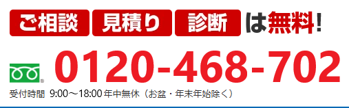 0120-468-702 9:00~18:00年中無休(お盆・年末年始除く)