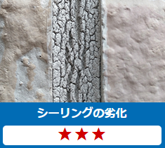 シーリングがヒビ割れしたり、痩せてしまっている場合は要注意です。