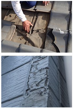 食品に賞味期限があるように、外壁材や屋根材にも耐久年数があります。これを過ぎてほったらかしにしてしまうと、屋根・外壁材ともにボロボロに劣化してきます。一定以上の劣化になってしまうと、新潟琥建では対応する事ができなくなってしまいます。その場合、屋根・外壁材そのものを張り替えるか、その上から重ね貼りするかの高額な改修となります。