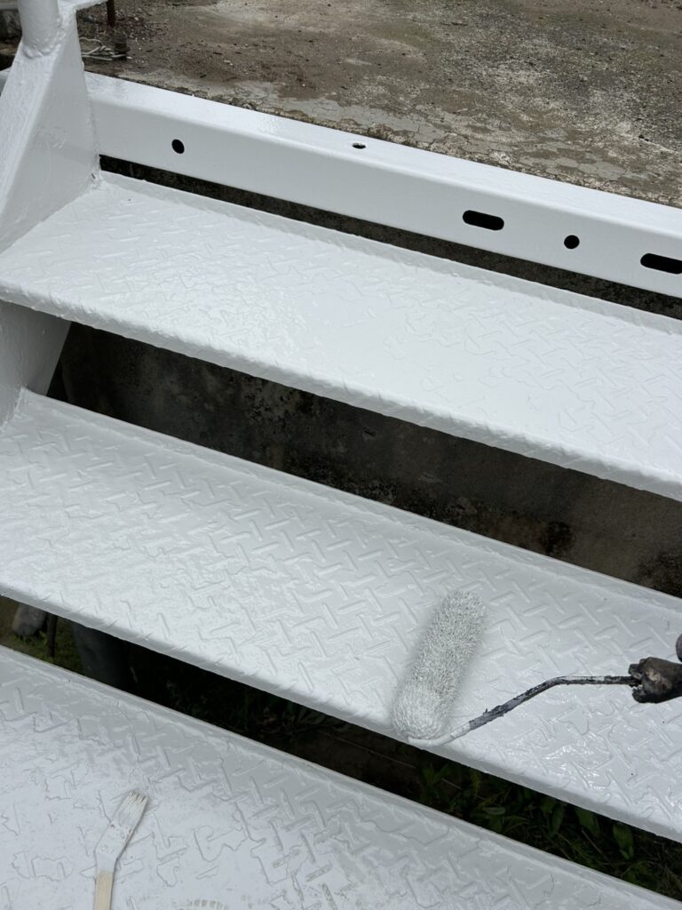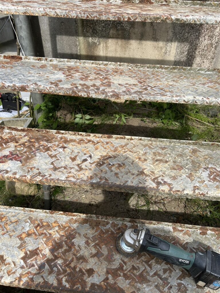 今回は、新潟市秋葉区で鉄骨階段塗装工事を施工してきました。溶接までしなくてもまだ大丈夫だった為、ディスクサンダーでしっかり細かいところまでケレンを行い、錆止め、中塗り、上塗りの全4工程で施工させていただきました。